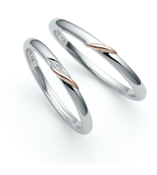 さりげなくポイントに入ったピンクゴールドが、二人の結びつきをイメージしたデザインです。